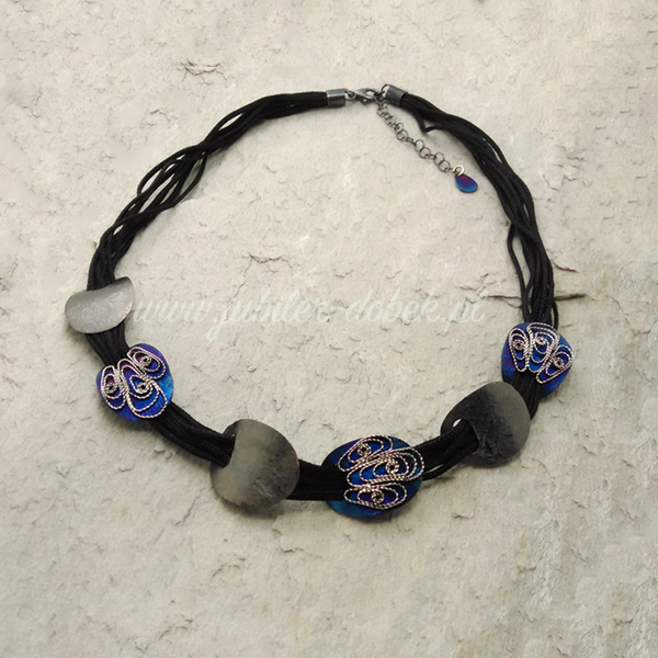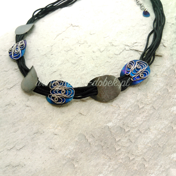 Naszyjnik srebrny próby 925 z tytanem wykonany ręcznie w naszej pracowni metodą filigranu.