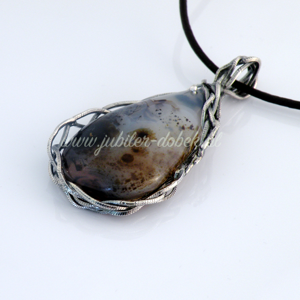 Naszyjnik srebrny próby 925 z agatem krajobrazowym wykonany ręcznie w naszej pracowni.
