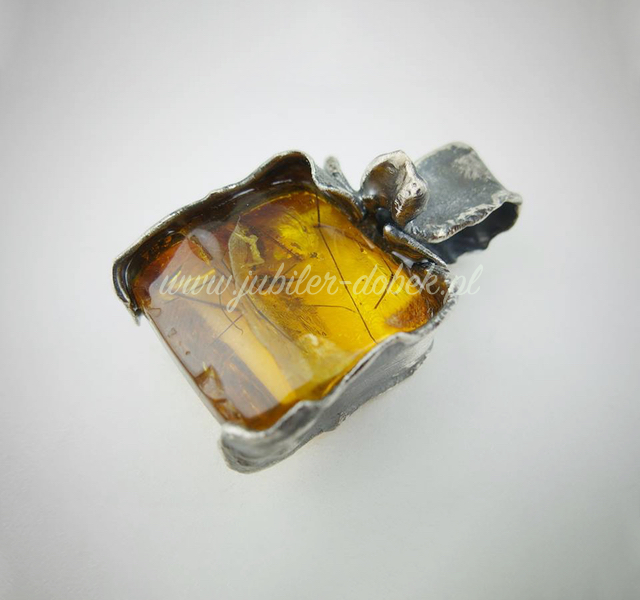 Wisiorek srebrny próby 925 z bursztynem bałtyckim wykonany w naszej pracowni metodą ręcznego modelowania materiału.